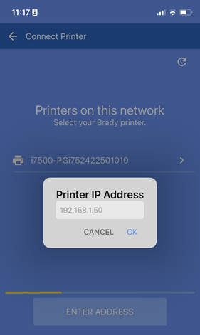 If the IP address is known, tap on Enter Address. Enter the IP address and tap OK.