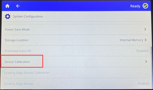 Label Sensor Calibration is only available when non-i75-series labels are installed. If i75-series labels are installed, the option is grayed out.
