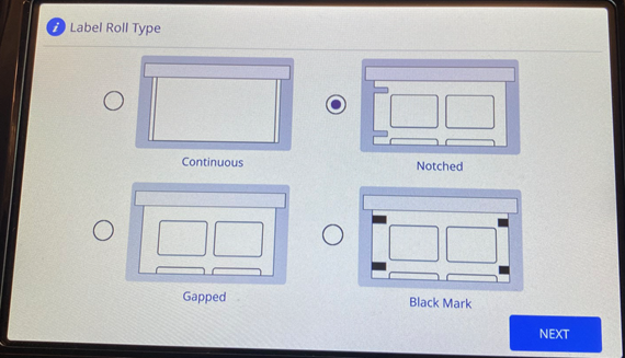 Select the Label Roll Type: Continuous, Notched, Gapped or Black Mark.