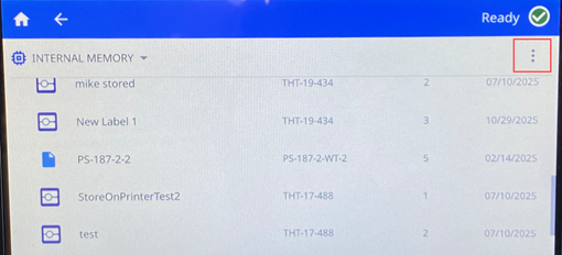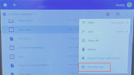 - Be sure the storage location on the printer is set to Internal Memory: i7500 - Adjust Printer Settings.