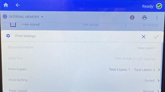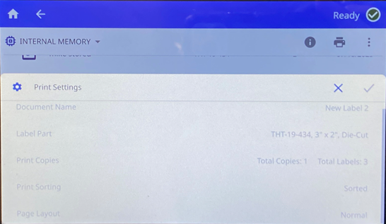 If the Print Settings can be changed, the text will be black. The following settings can be changed if the setting was not locked out in Brady Workstation: Print Copies, Print Sorting and Page Layout. Tap each Print setting to change it, if applicable.